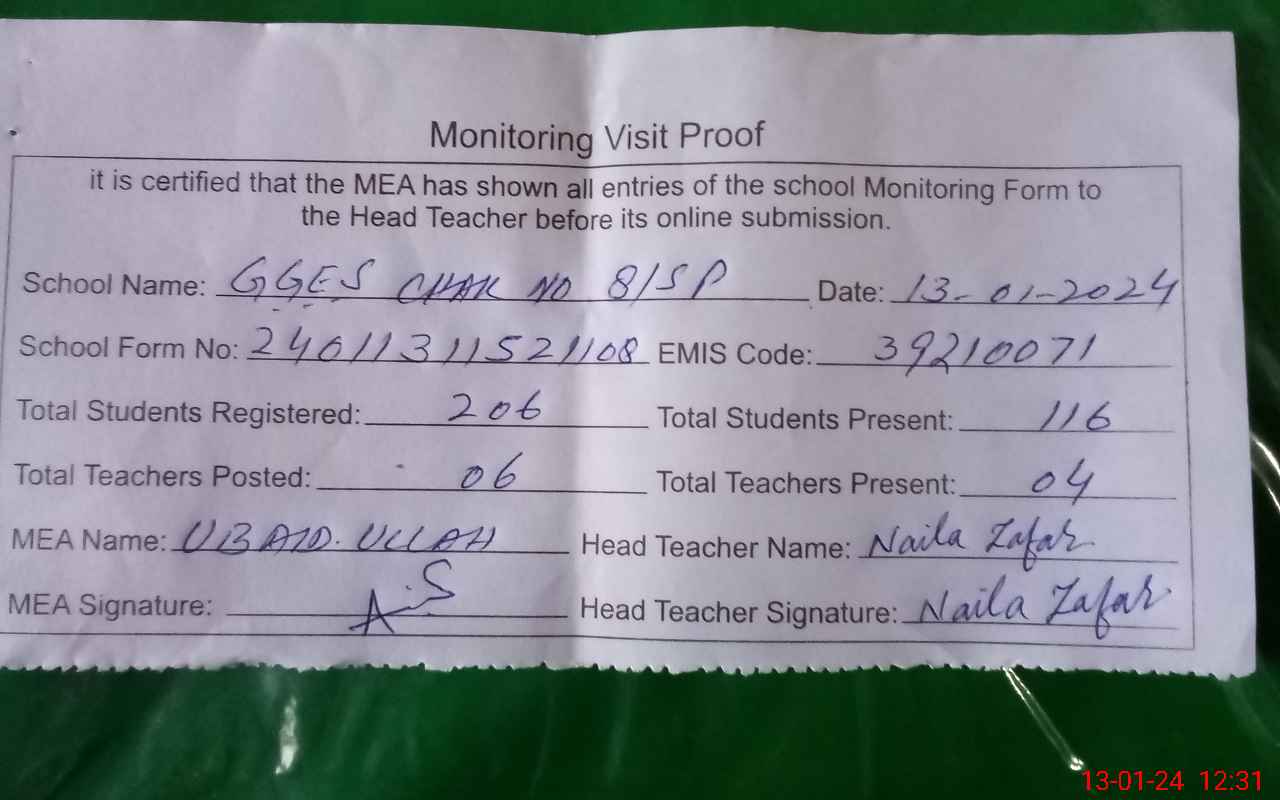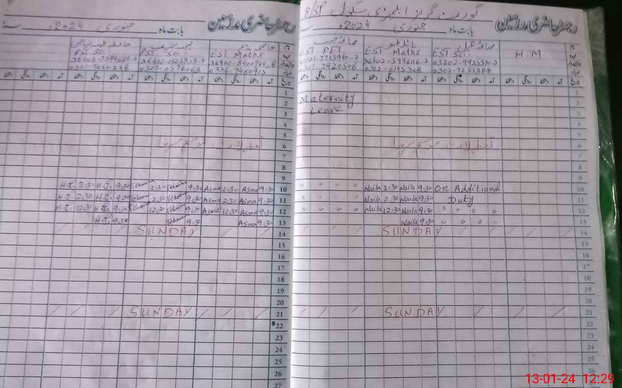 | Name: Gh**** Fa**** Designation: (School Headmaster's/Headmistress's) SST Science Phone/Cell Number: 03**** |