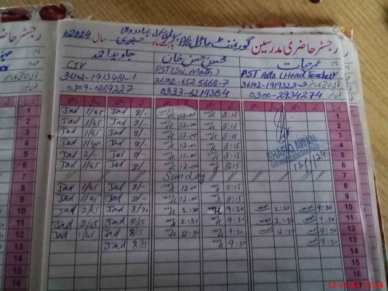 | Name: Um**** Ha**** Designation: (School Headmaster's/Headmistress's) PST Phone/Cell Number: 03**** |