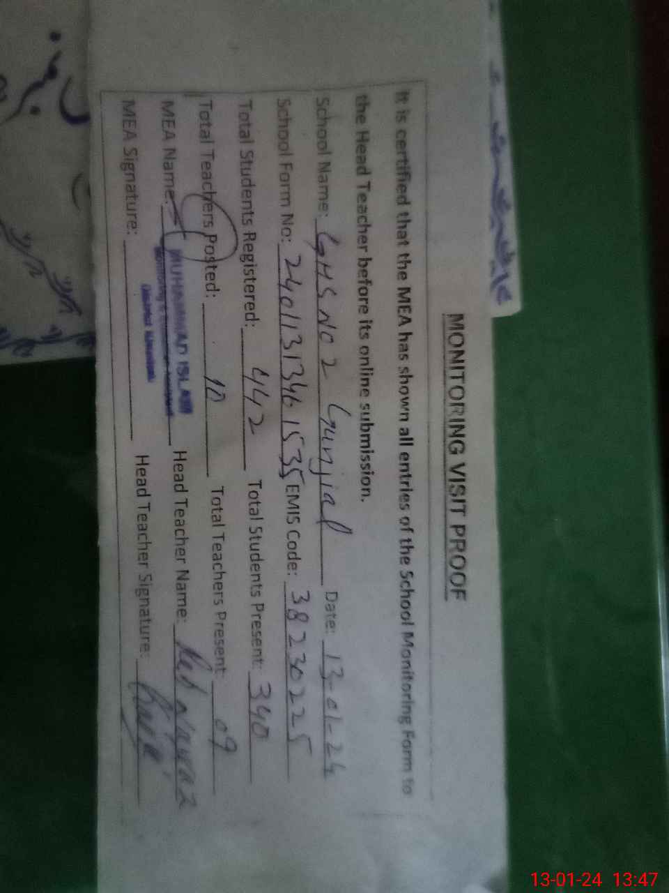 | EMIS Code: 38230225 | Name of School: GHS NO. 2 GUNJIAL | |||