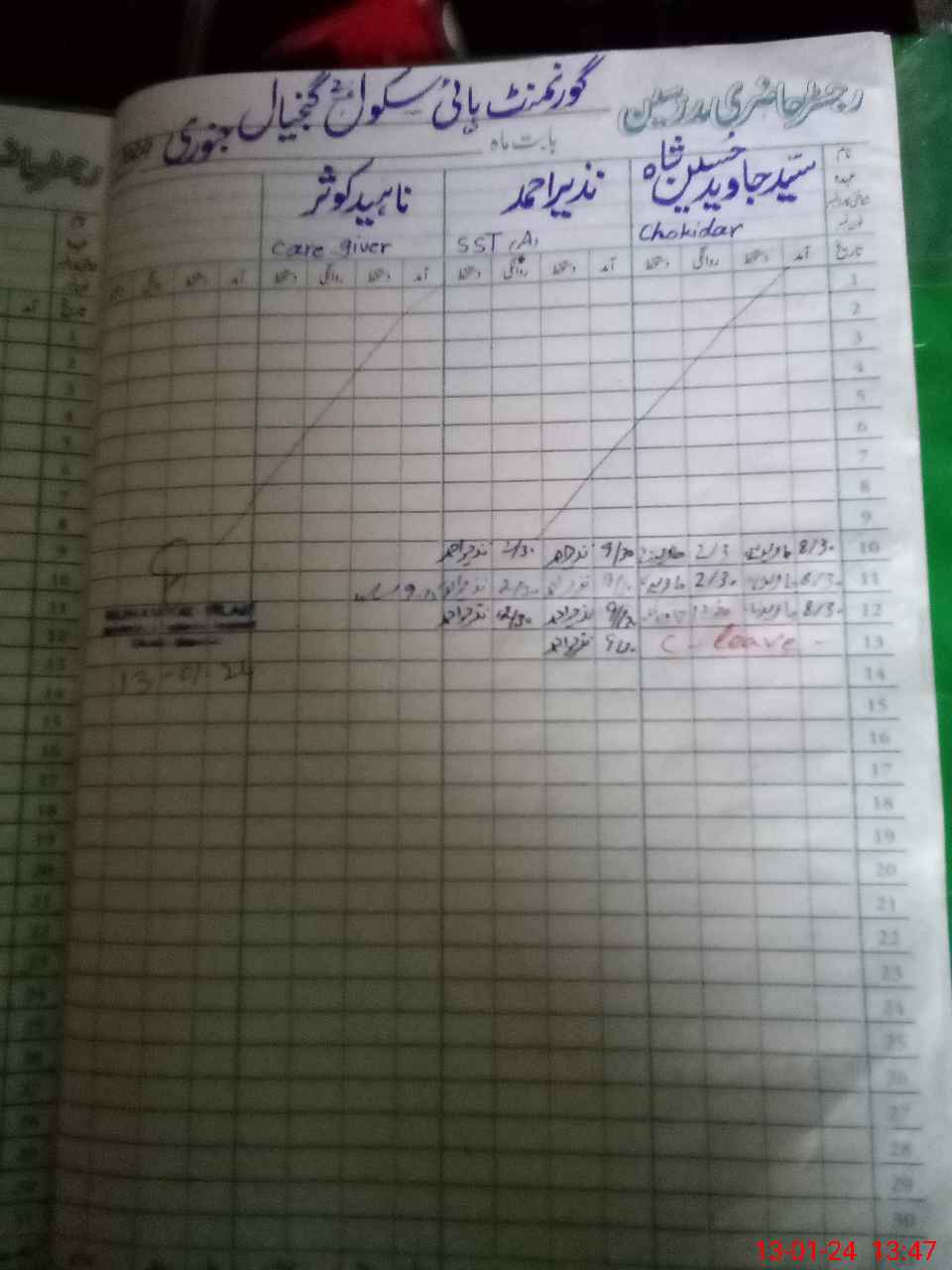 | 38**** | Ja**** Hu**** | CHOKEDAR | Regular | 0 | 0 | 0 | 0 | 0 | 0 | 0 | 0 | 0 | Casual |