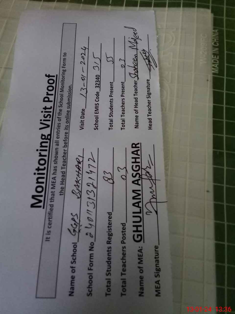 | EMIS Code: 32340315 | Name of School: GGPS BAKHARI | |||