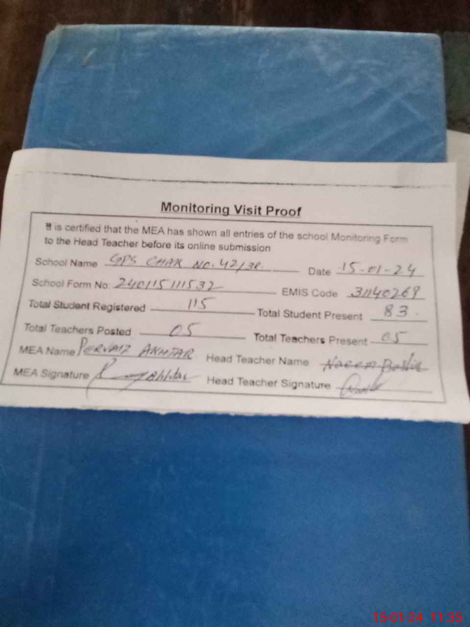 | EMIS Code: 31140269 | Name of School: GPS CHAK NO.42/3-R | |||