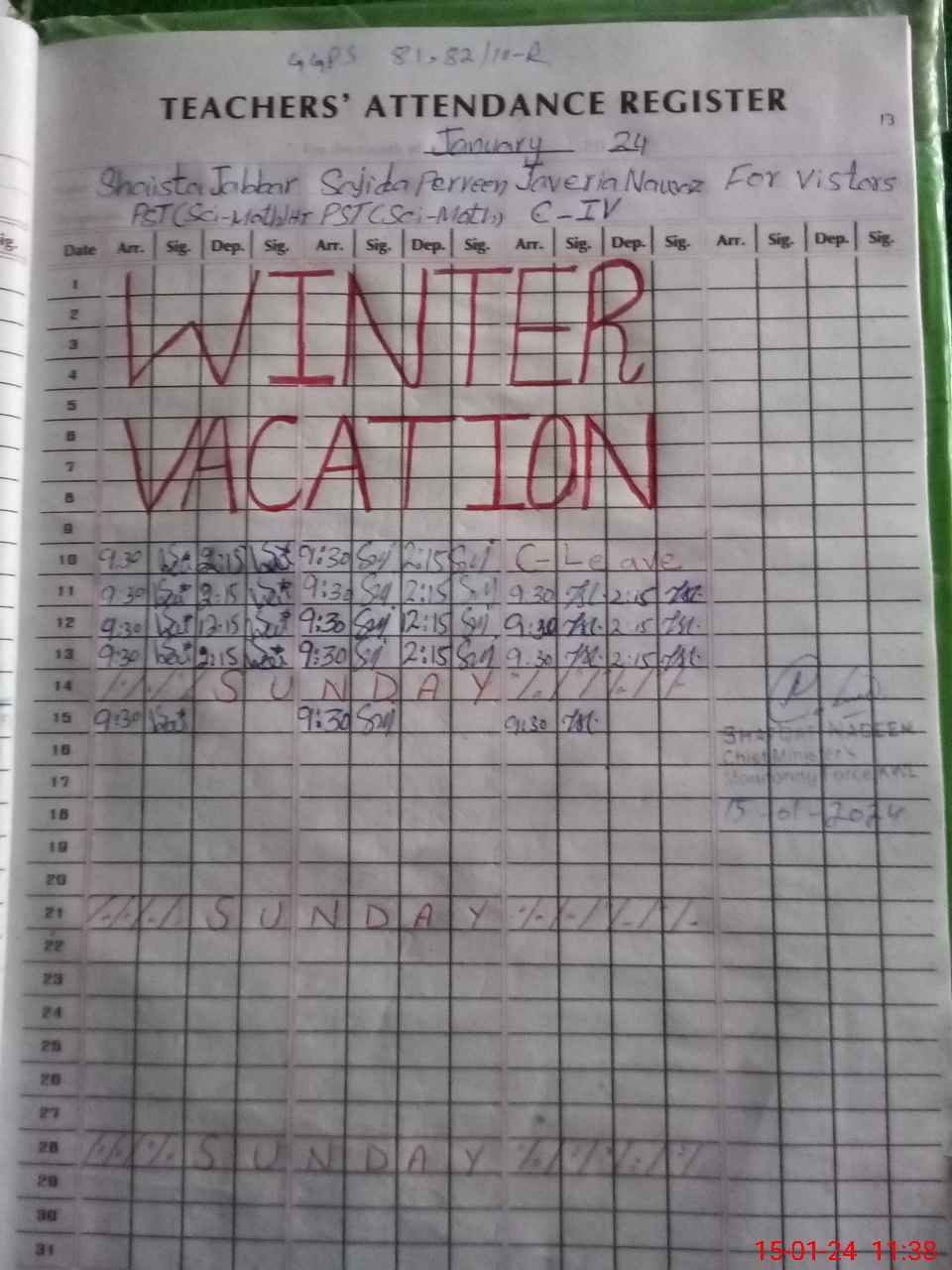 | Name: Sh**** Ja**** Designation: (School Headmaster's/Headmistress's) PST Phone/Cell Number: 03**** |