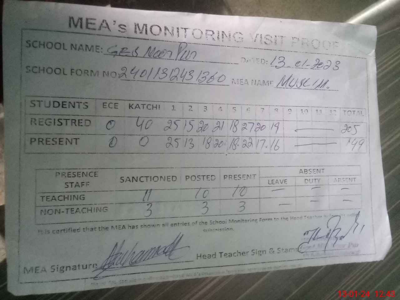 | EMIS Code: 36410209 | Name of School: GES NOOR PUR, KABIRWALA | |||