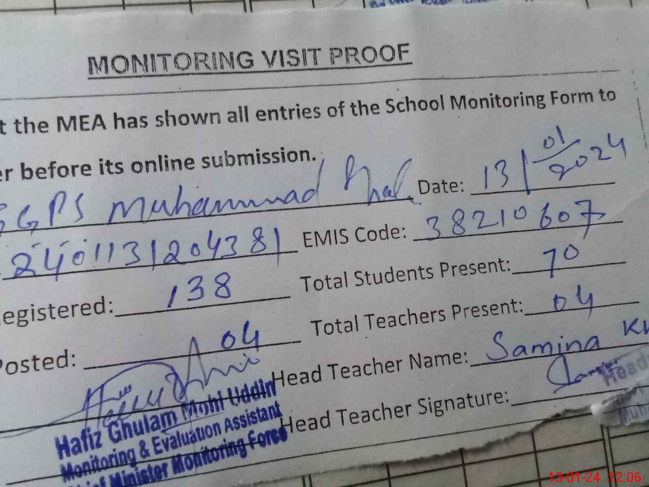 | EMIS Code: 38210607 | Name of School: GGPS MUHAMMAD SHAH | |||