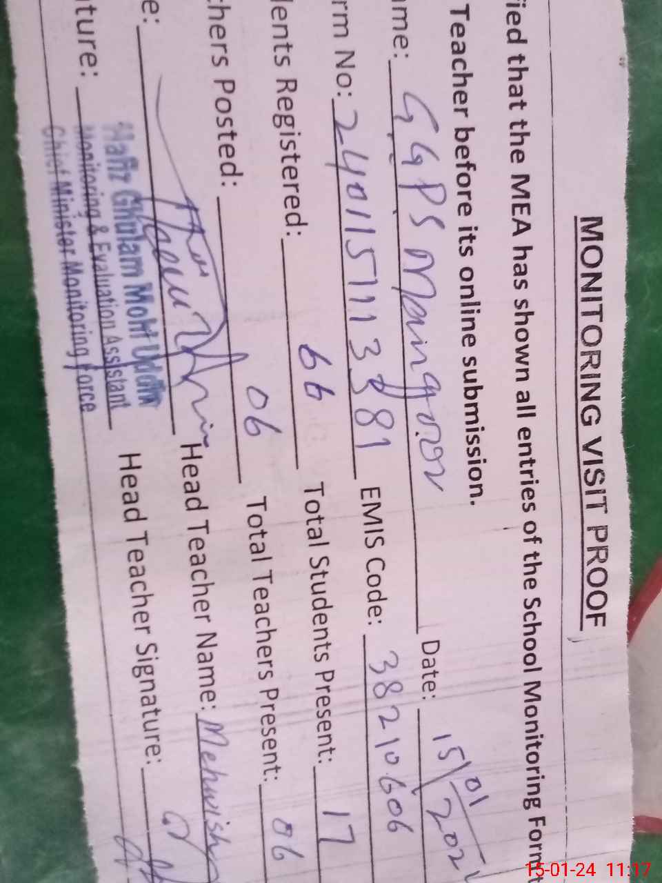 | EMIS Code: 38210606 | Name of School: GGPS MANGOOR | |||