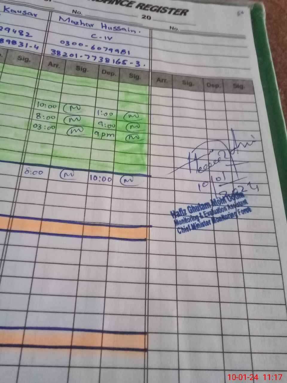 | CNIC | Full Name | Designation | R/C | Absence during last cal. month |