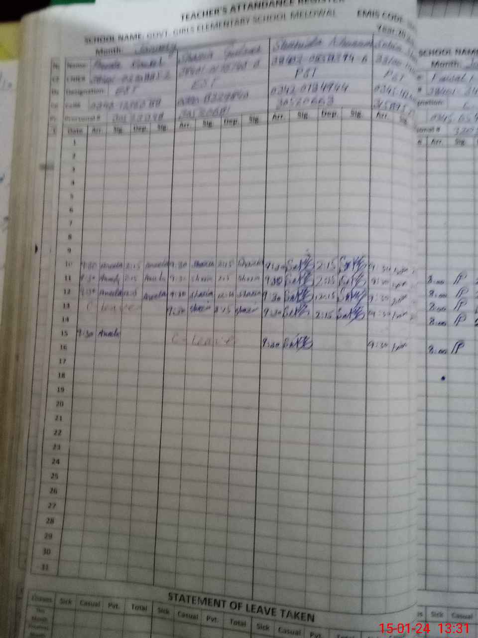| CNIC | Full Name | Designation | R/C | Absence During Last Calender Month |