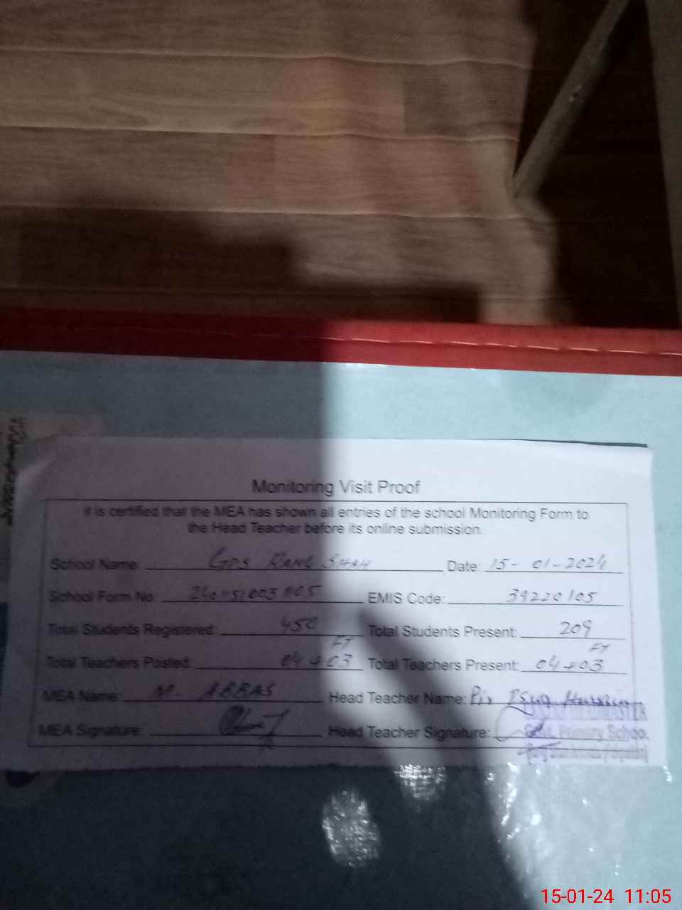 | EMIS Code: 39220105 | Name of School: GPS RANG SHAH | |||