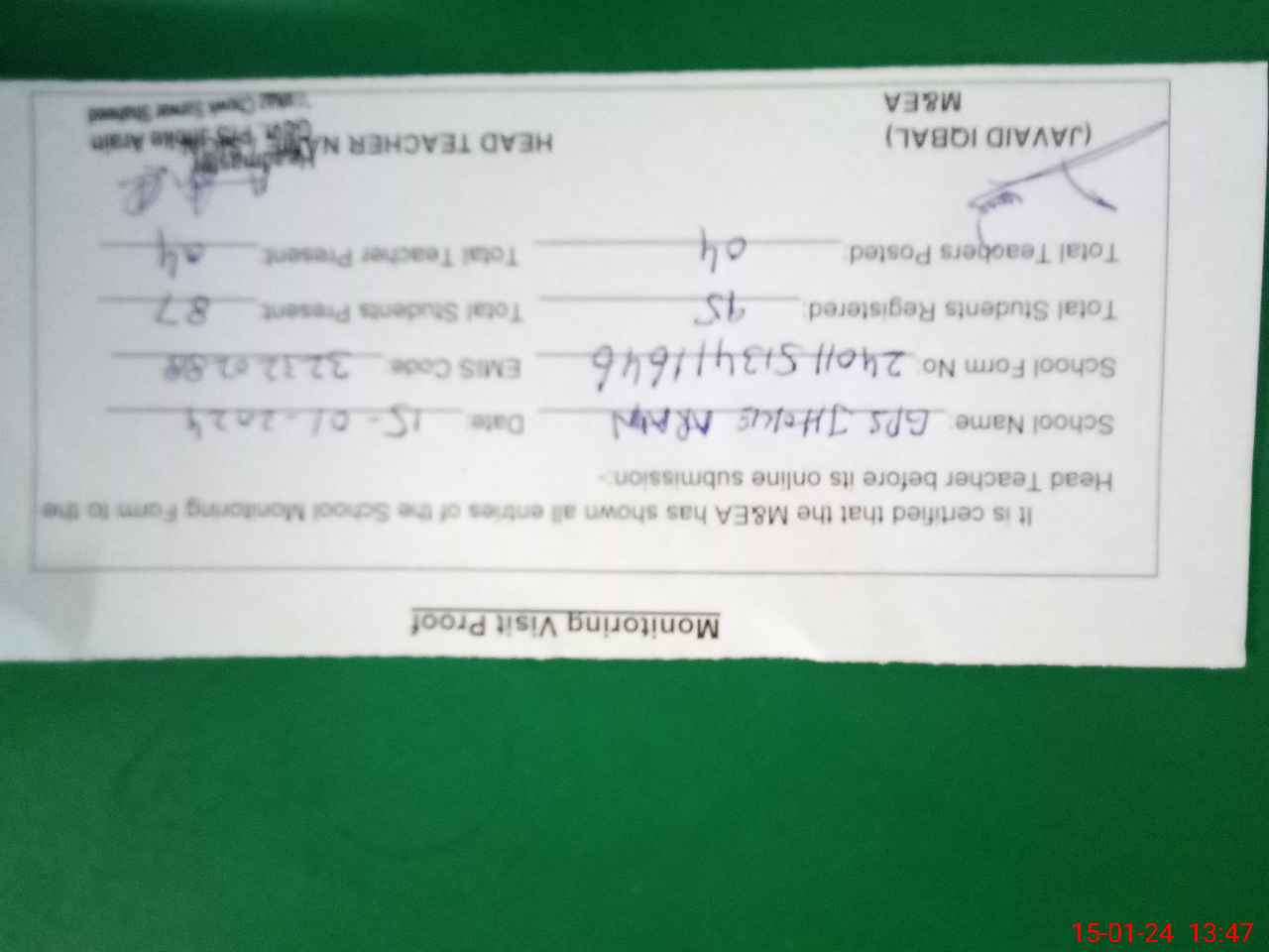 | Name: MAs**** Designation: (School Headmaster's/Headmistress's) PST Phone/Cell Number: 03**** |