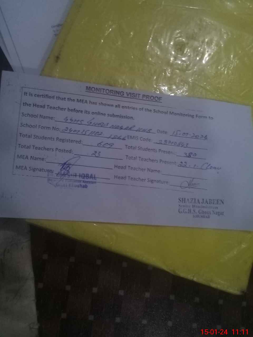 | EMIS Code: 38210843 | Name of School: GGHS GHOUS NAGAR KHUSHAB | |||