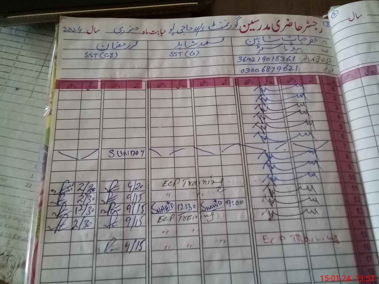 | CNIC | Full Name | Designation | R/C | Absence during last cal. month |