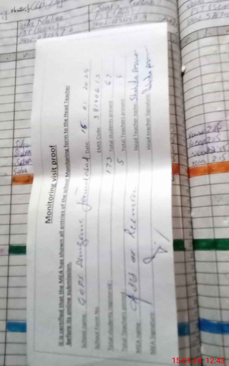 | EMIS Code: 38140613 | Name of School: GGPS DHAGANA JAVED ABAD | |||