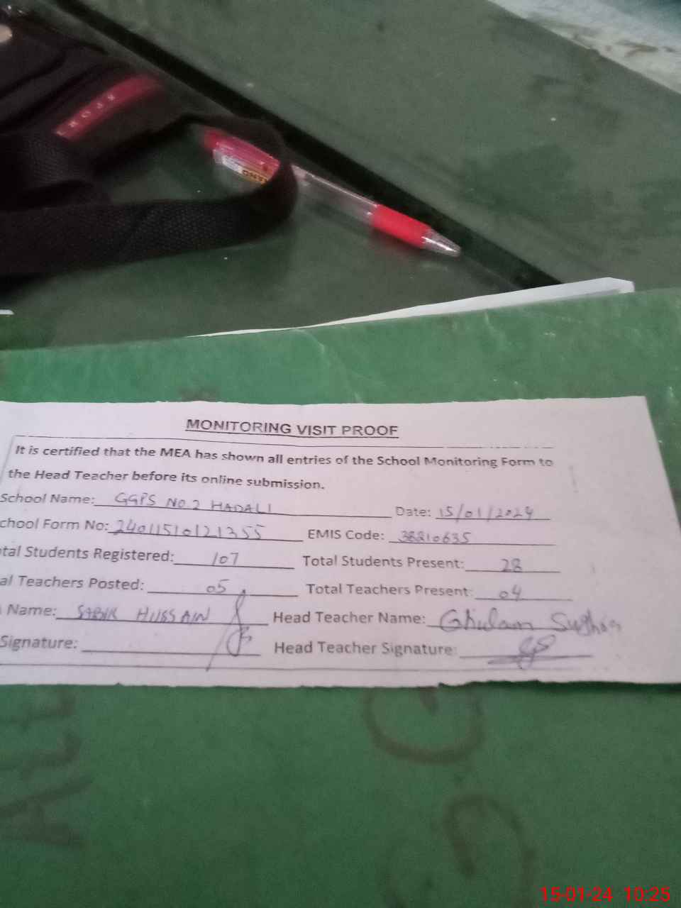 | EMIS Code: 38210635 | Name of School: GGPS NO. 2 HADALI | |||