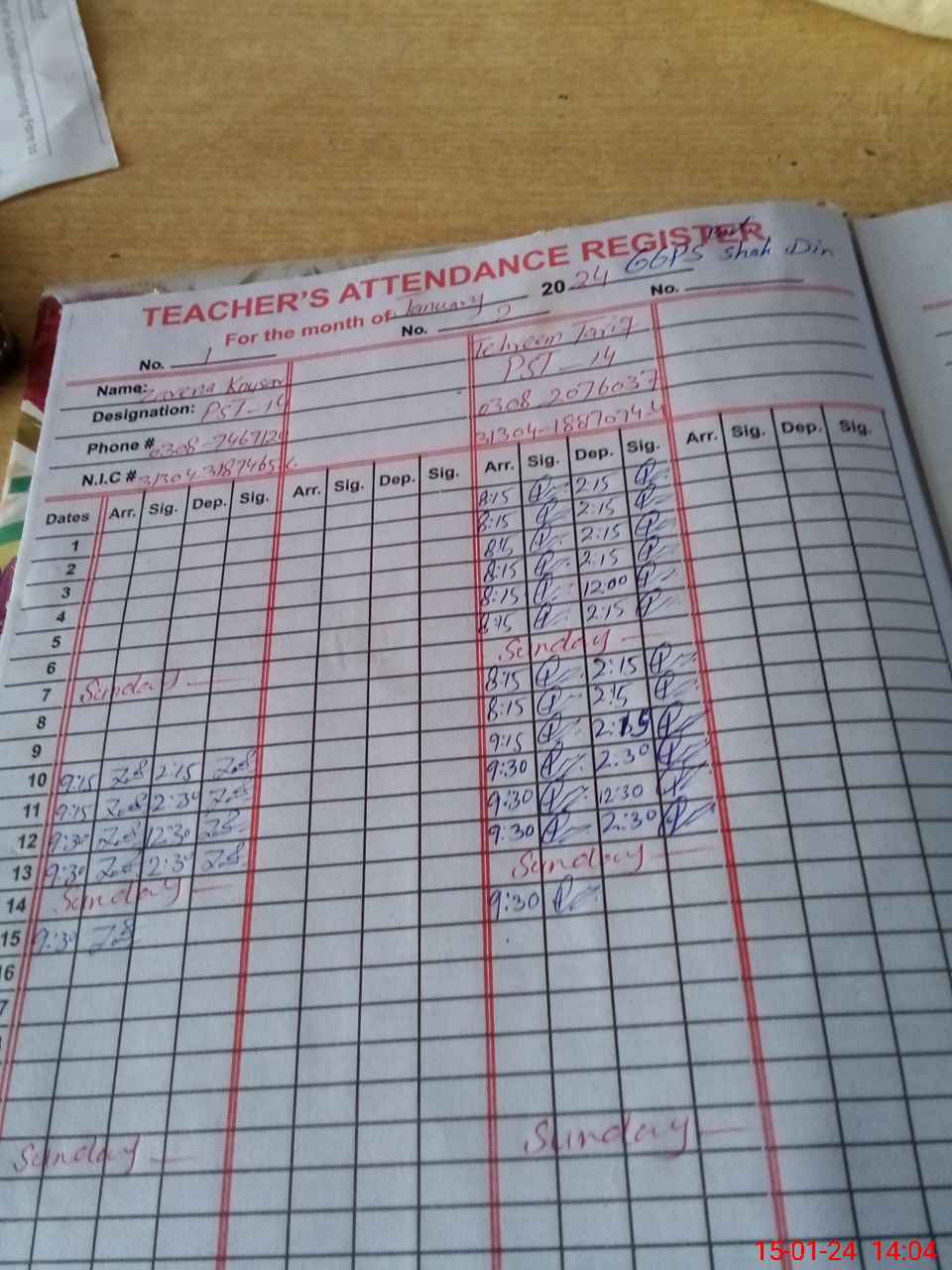 | Name: Za**** Ko**** Designation: (School Headmaster's/Headmistress's) PST Phone/Cell Number: 03**** |