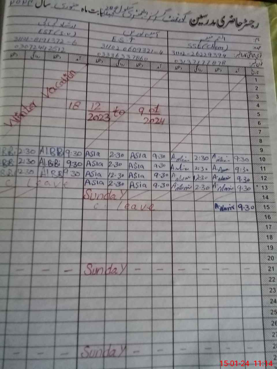 | 31**** | Ar**** Bi**** | 3 | 1 | 0 | 0 | 0 | 0 | 0 | 0 | 0 | 0 | 0 | Absent (Un-Authorized) |
