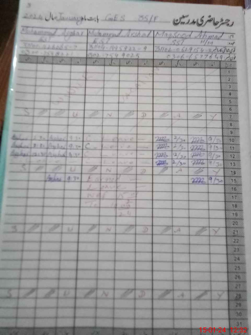 | CNIC | Full Name | Designation | R/C | Absence During Last Calender Month |