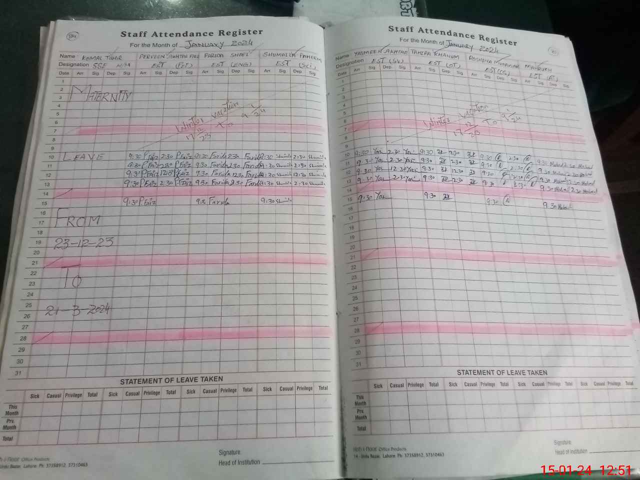 | Leave | Duty | Absent | Maternity | Medical | Ex- Pak |