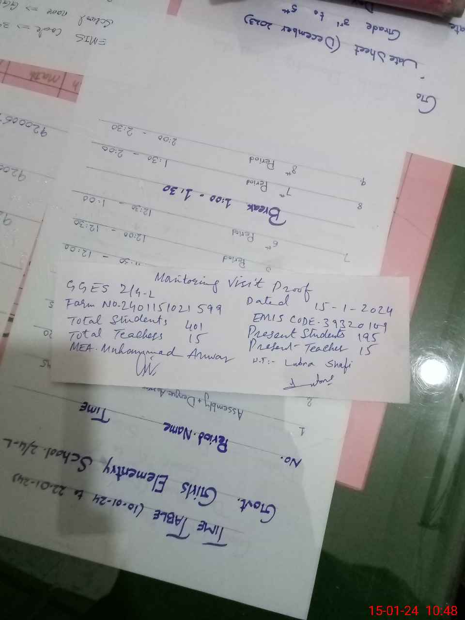| Monitoring Date: 15-01-2024 | Start Time: 15-01-2024 10:21 AM | End Time: 15-01-2024 11:16 AM | Name of MEA: MU**** AN**** | |