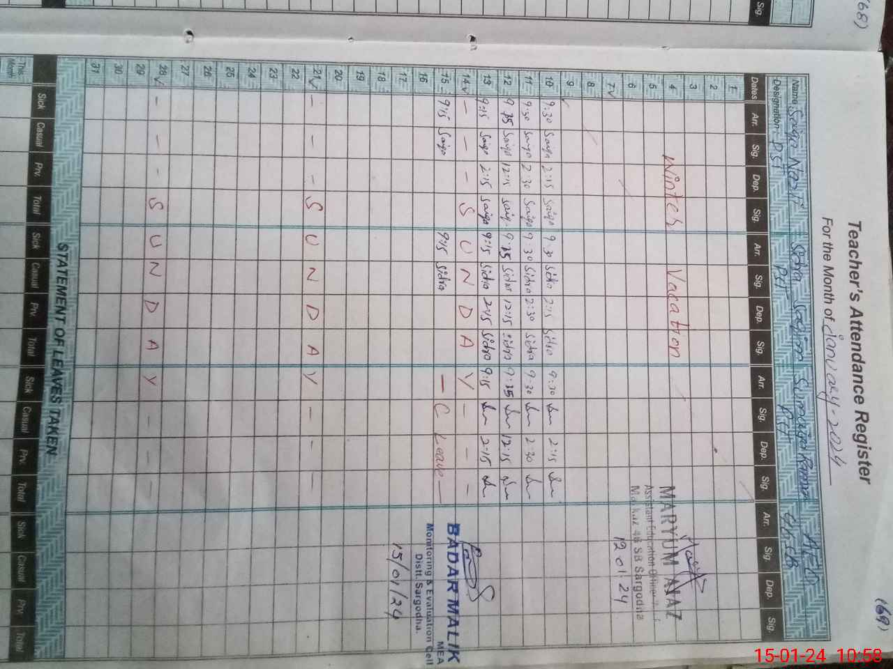 | Name: Si**** Sa**** Designation: (School Headmaster's/Headmistress's) PST Phone/Cell Number: 03**** |