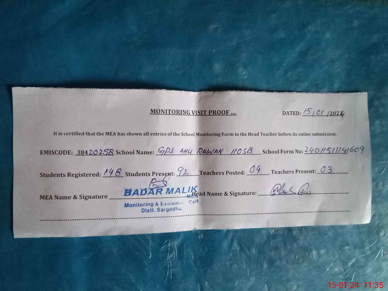 | EMIS Code: 38420258 | Name of School: GPS AHLI RAWAN CHAK NO. 110 SB | |||