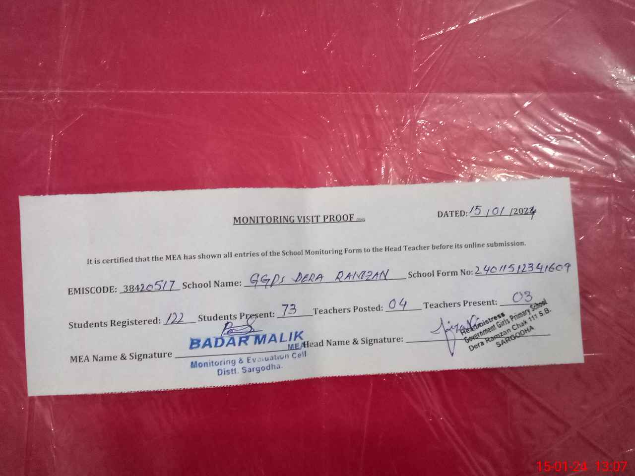 | EMIS Code: 38420517 | Name of School: GGPS DERA RAMZAN | |||