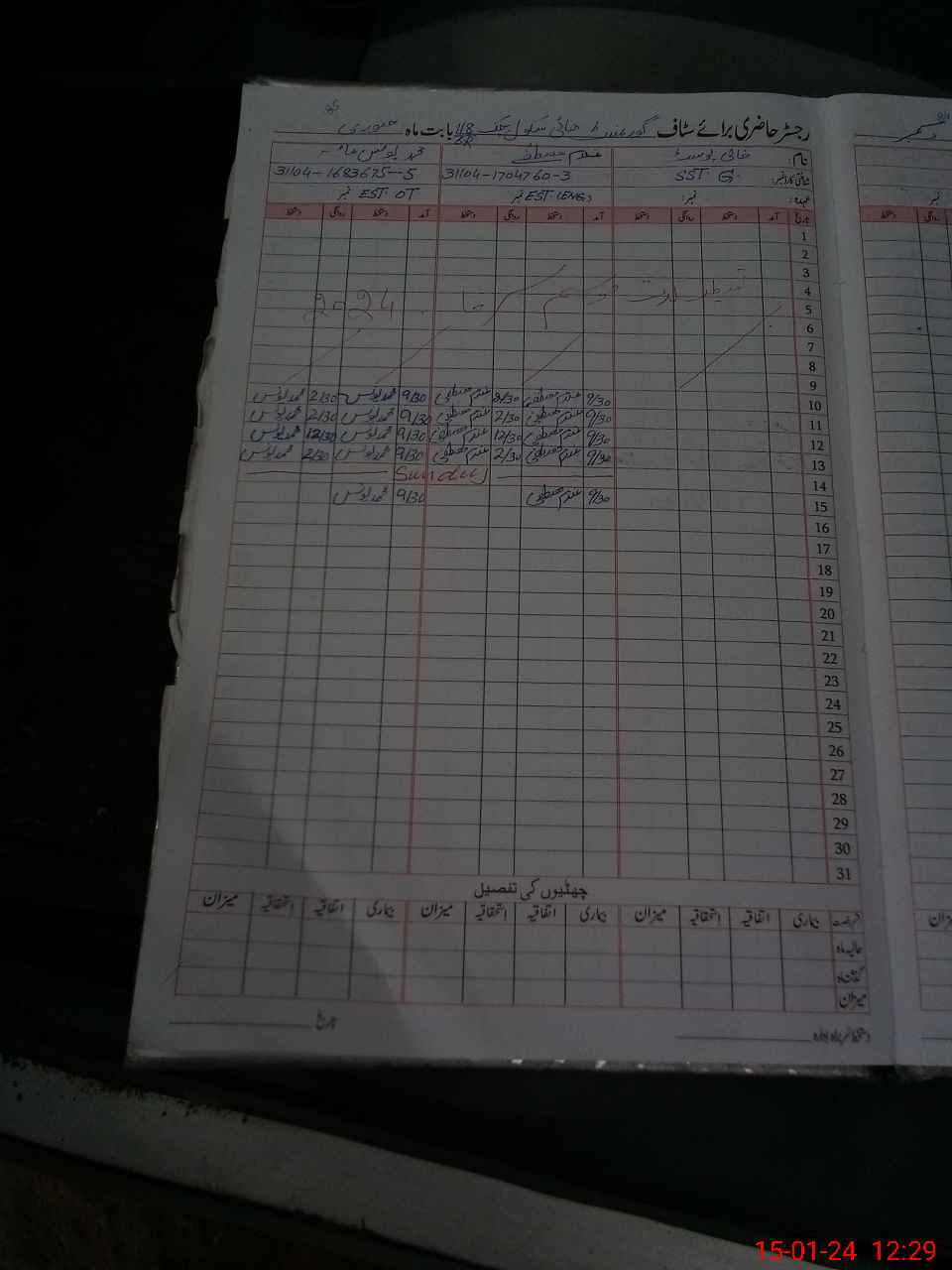 | CNIC | Full Name | Designation | R/C | Absence During Last Calender Month |