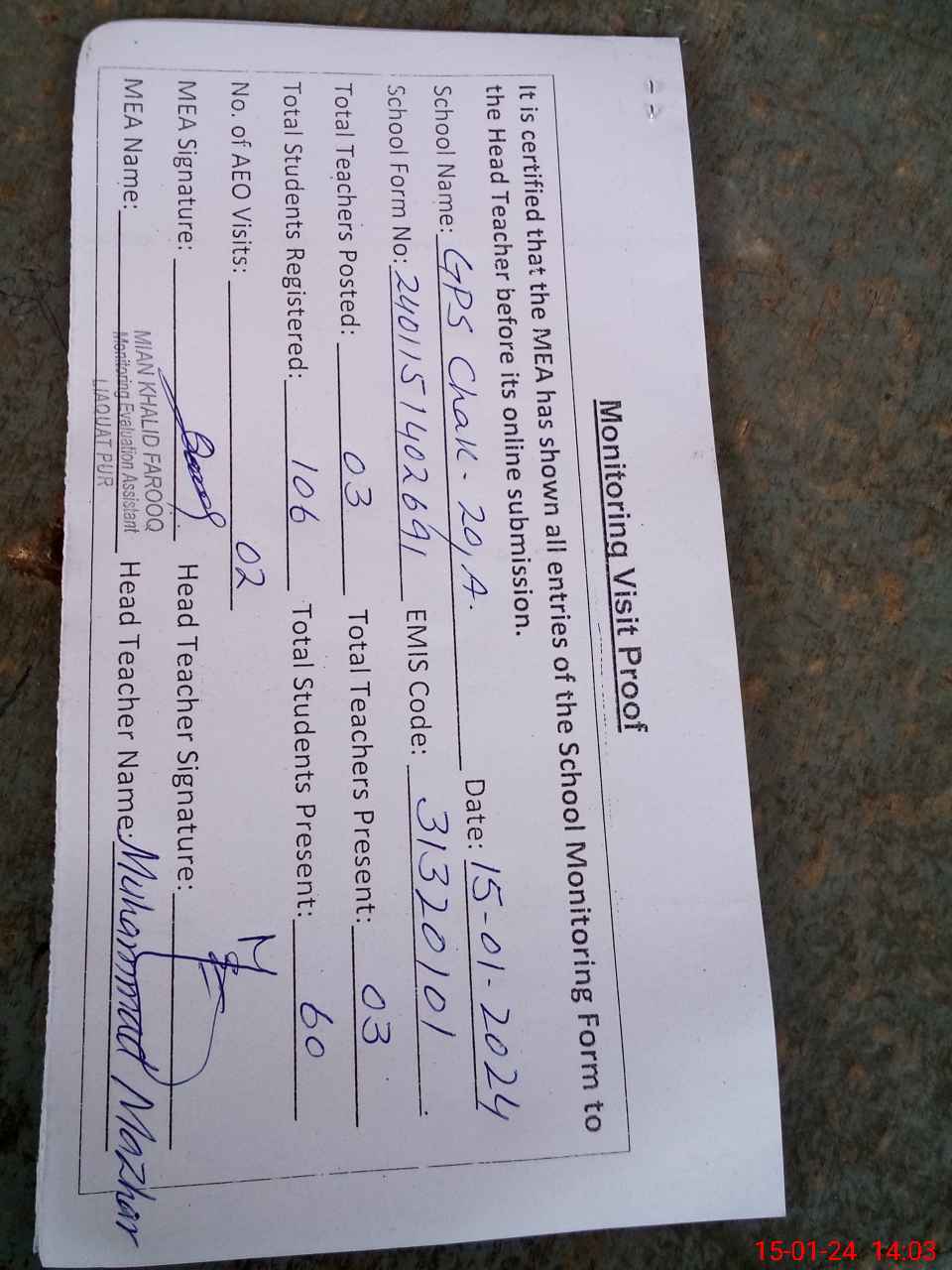 | EMIS Code: 31320101 | Name of School: GPS CHAK 20/A | |||