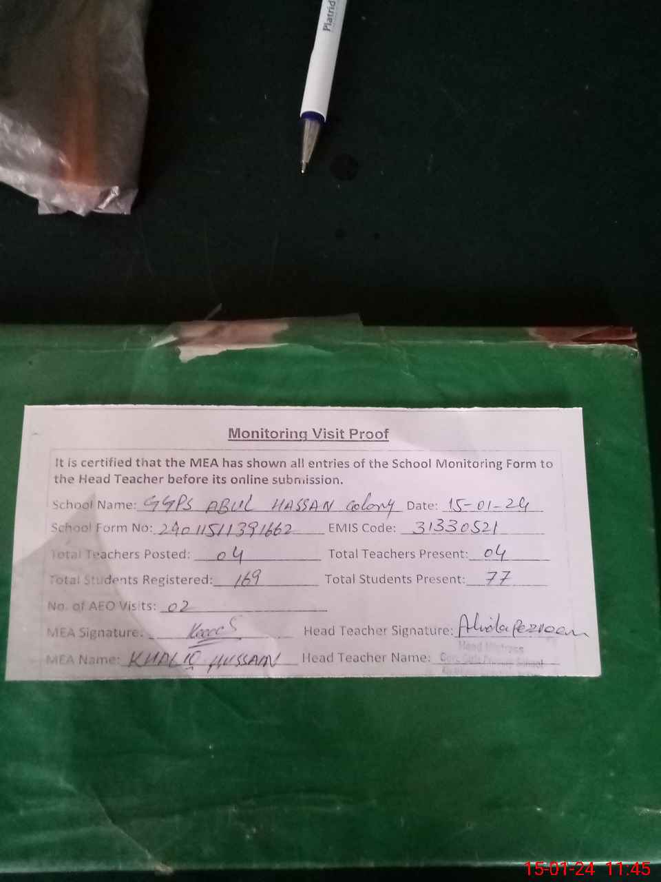 | EMIS Code: 31330521 | Name of School: GGPS ABUL HASSAN COLONY | |||