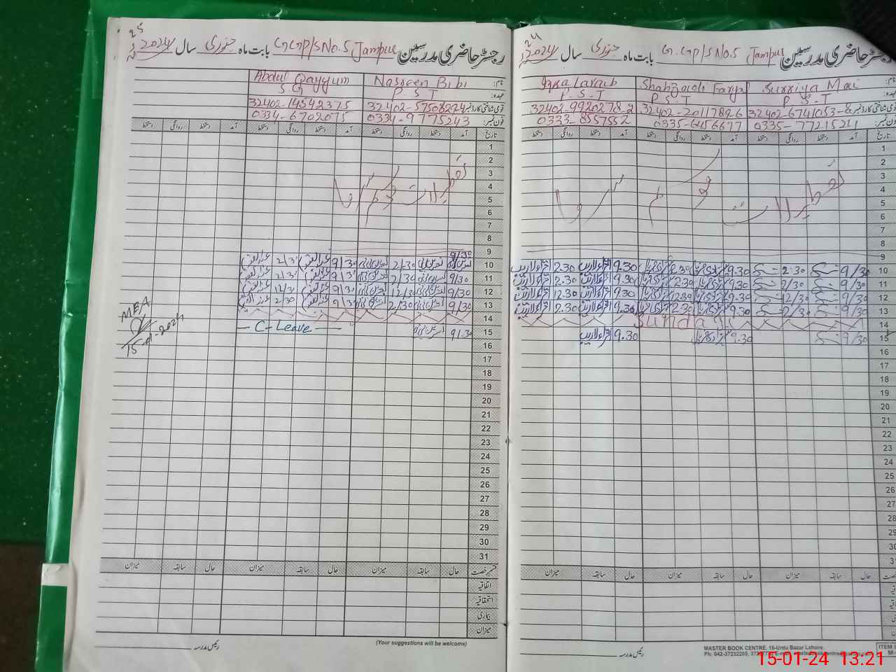 | CNIC | Full Name | Designation | R/C | Absence During Last Calender Month |