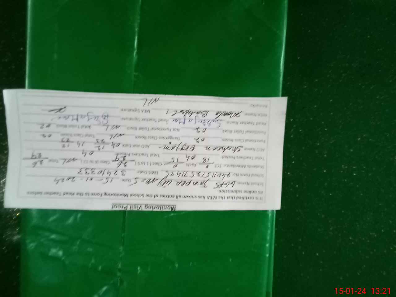 | Monitoring Date: 15-01-2024 | Start Time: 15-01-2024 12:57 PM | End Time: 15-01-2024 01:22 PM | Name of MEA: Kh**** Ba**** | |