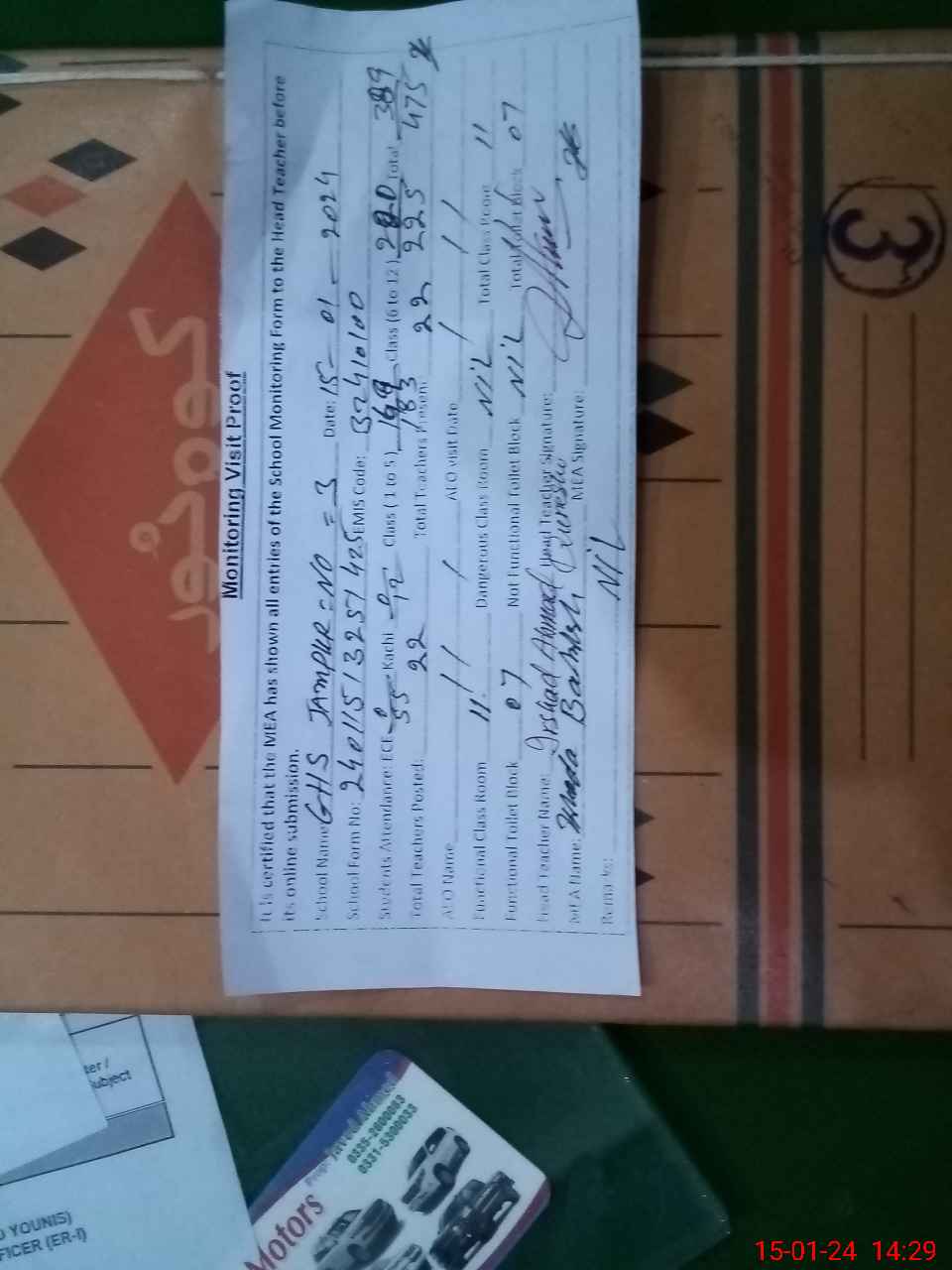 | Attendance Register | Head Teacher | MEA with School | Visit Proof |