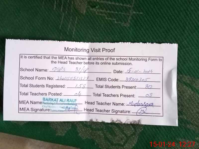 | EMIS Code: 39210305 | Name of School: GGPS CHAK NO.31 SP | |||