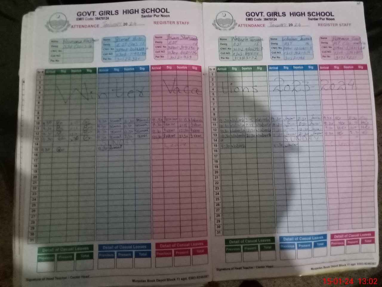 | CNIC | Full Name | Designation | R/C | Absence During Last Calender Month |