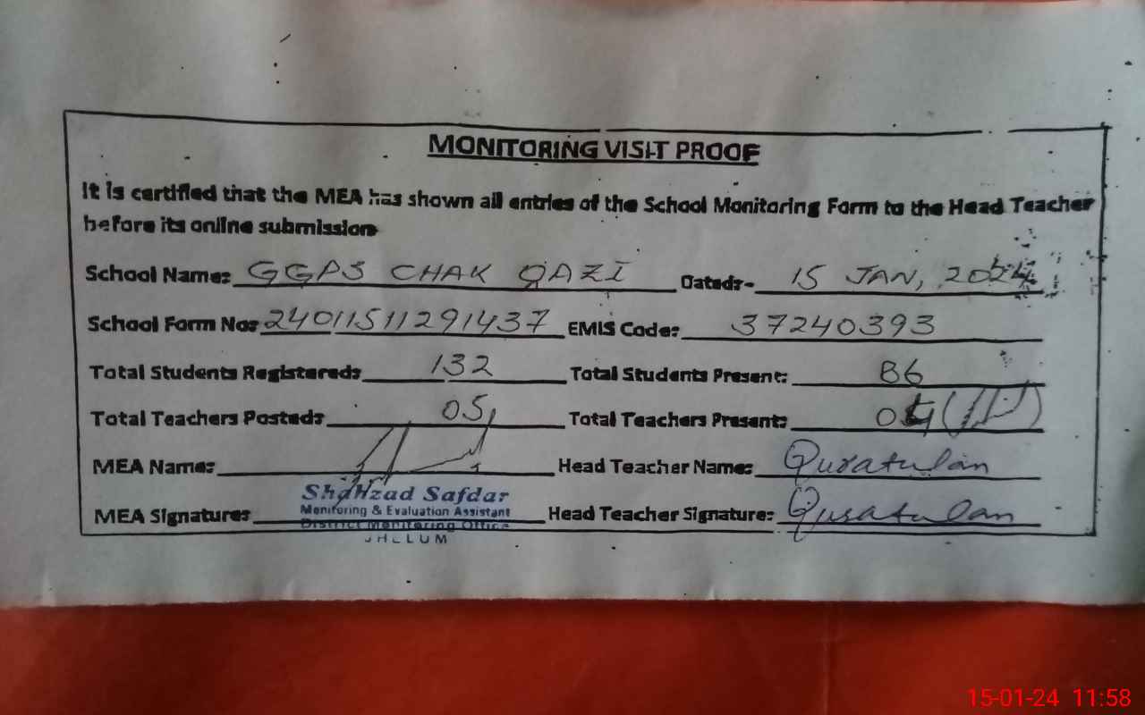 | EMIS Code: 37240393 | Name of School: GGPS CHAK QAZI | |||