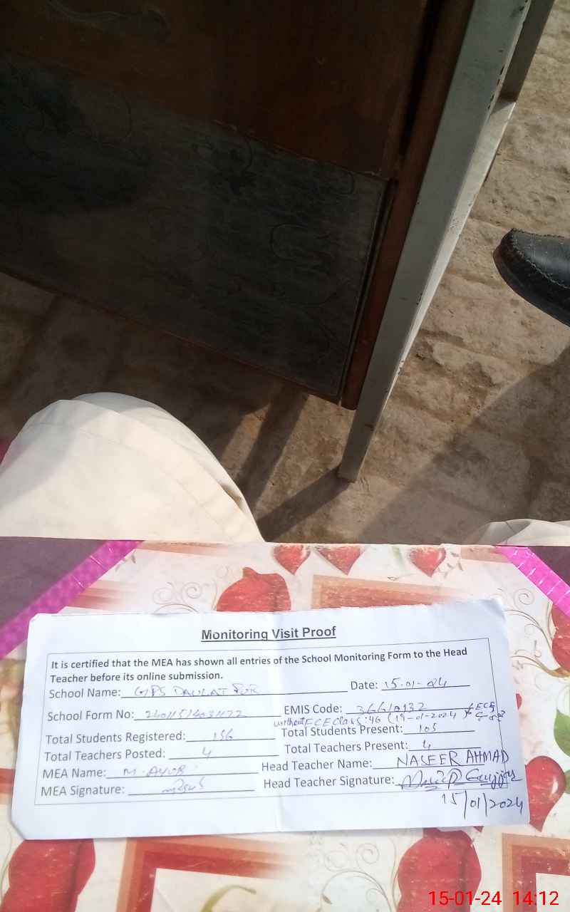 | EMIS Code: 36610132 | Name of School: GPS DOULAT PUR | |||