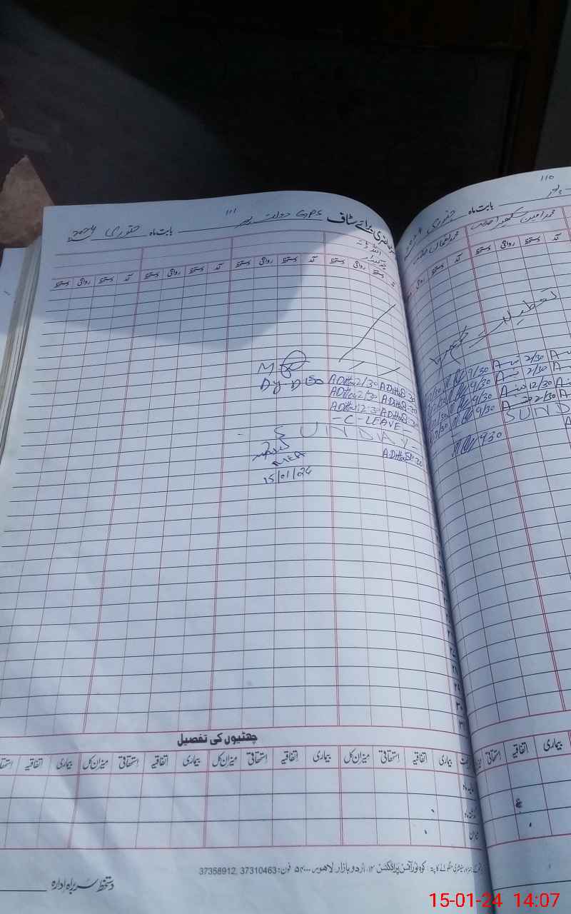 | CNIC | Full Name | Designation | R/C | Absence During Last Calender Month |
