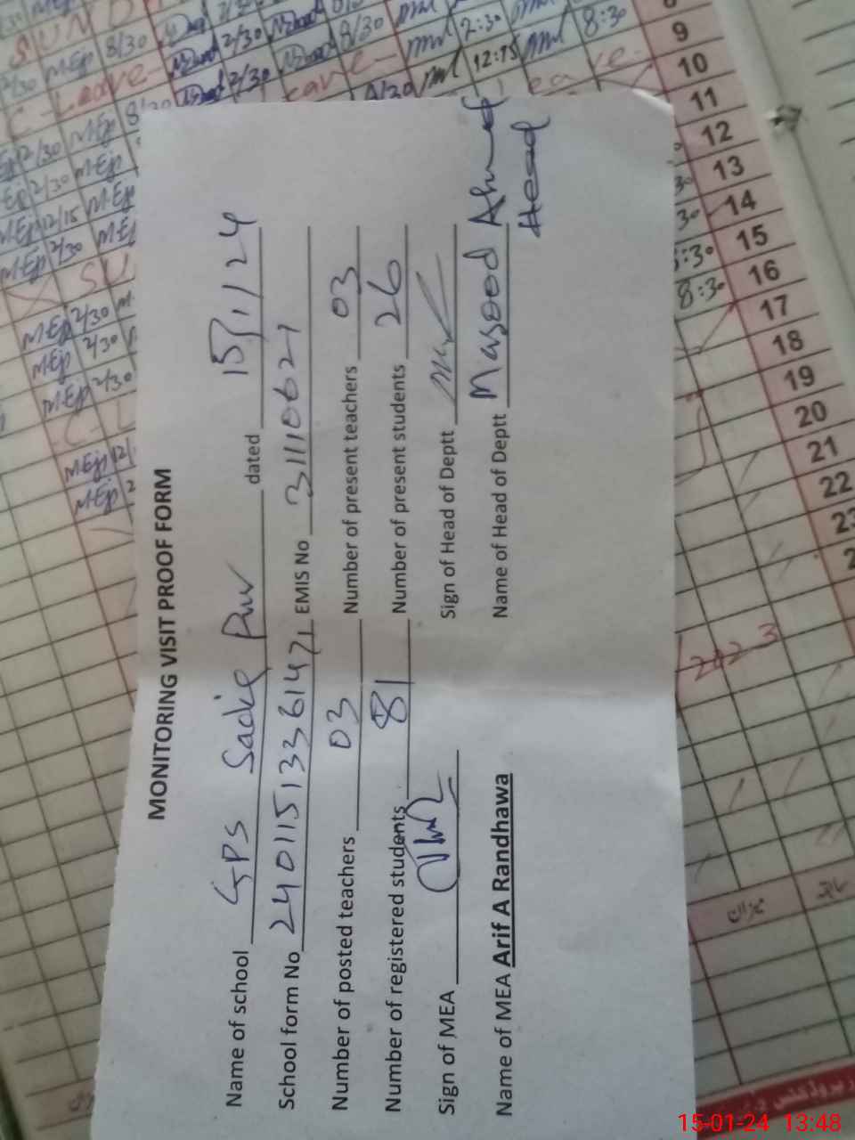 | Name: MA**** AH**** Designation: (School Headmaster's/Headmistress's) PST Phone/Cell Number: 03**** |