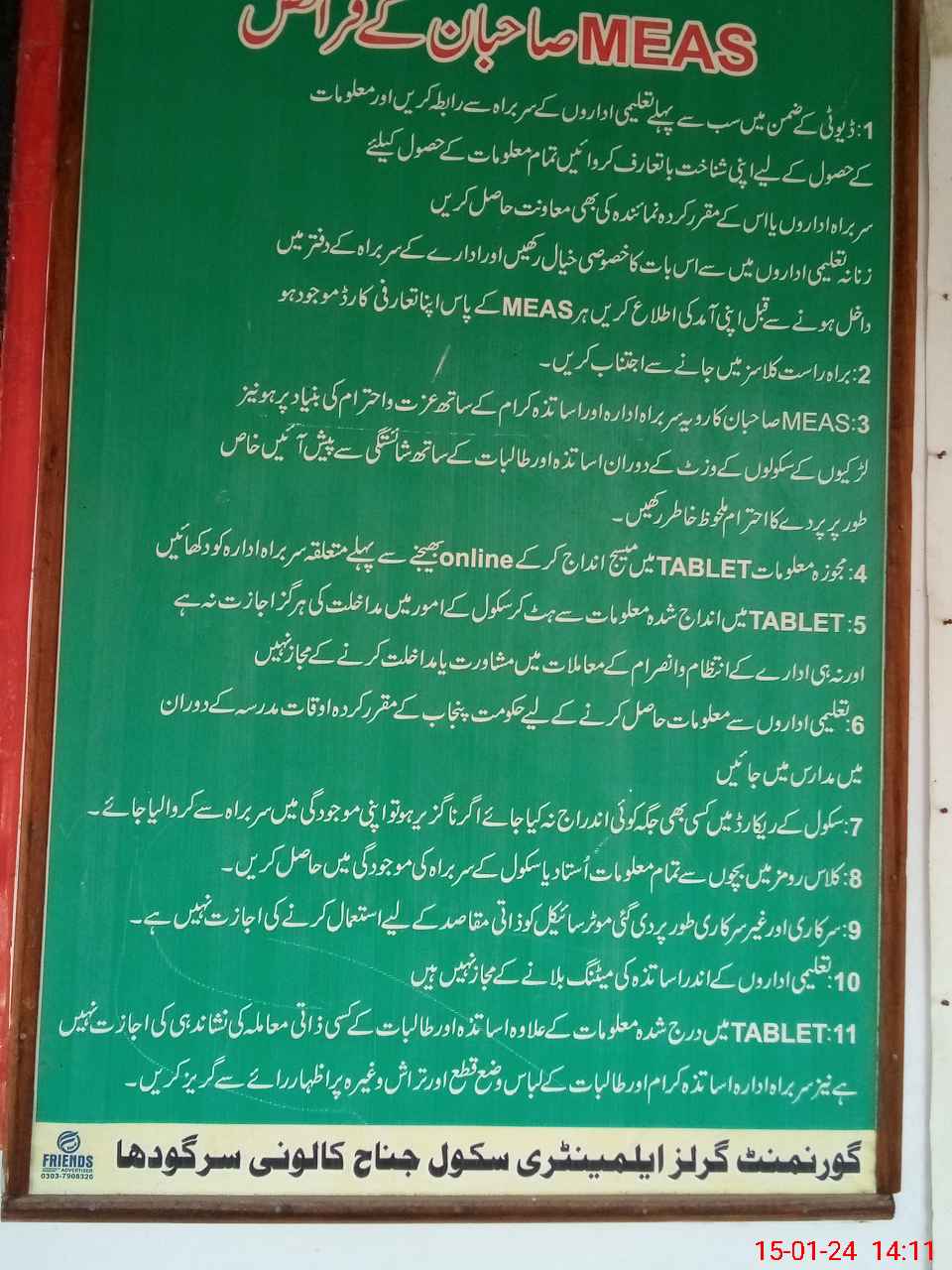 | Certified that this School was Inspected by the Undersigned MEA/DMO Today and the Information Stated Above is as Per Record. | |||||