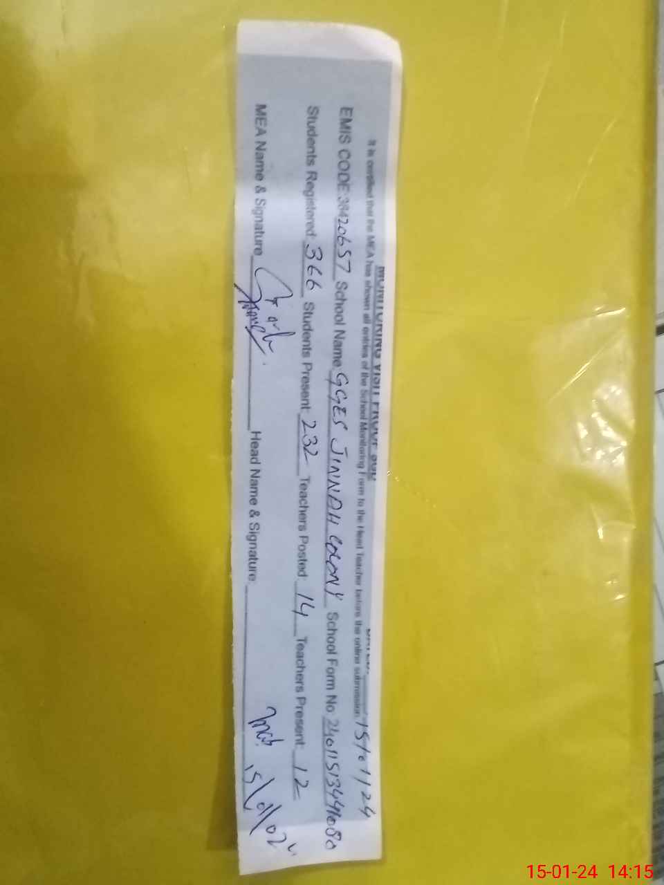 | EMIS Code: 38420657 | Name of School: GGES JINNAH COLONY | |||