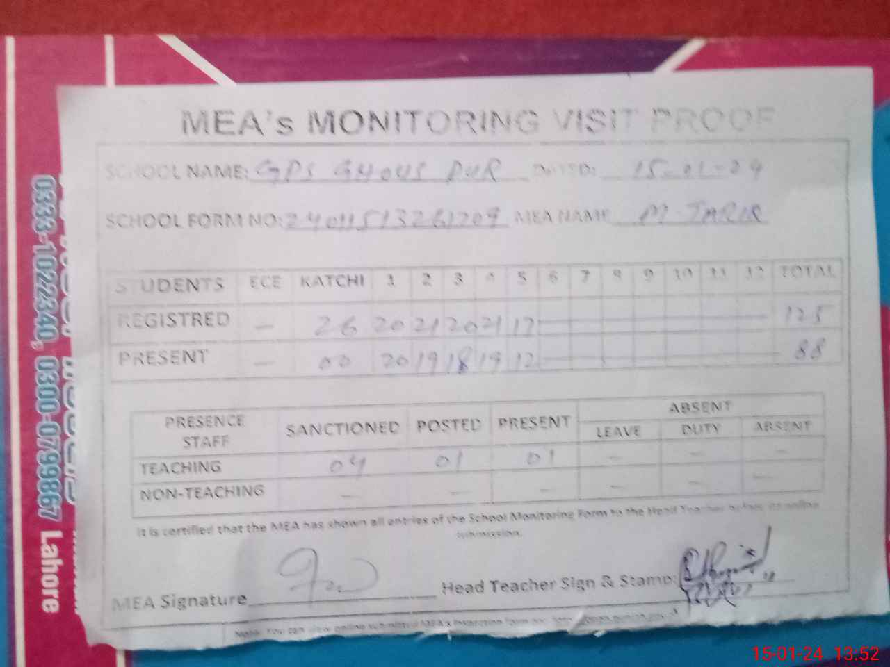 | EMIS Code: 36410326 | Name of School: GPS GHOUS PUR, P/O SARDAR PUR, NAWAN SHEHR | |||