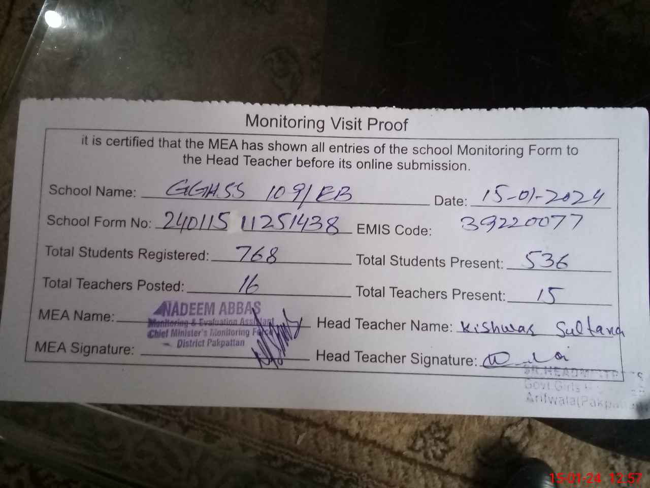 | EMIS Code: 39220077 | Name of School: GGHSS 109 EB | |||