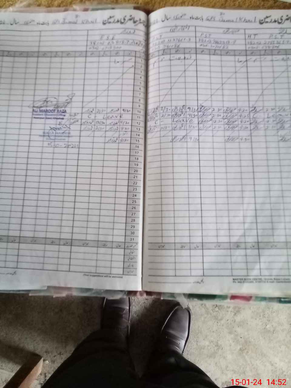 | CNIC | Full Name | Designation | R/C | Absence During Last Calender Month |