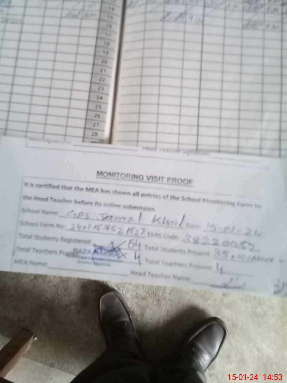 | Attendance Register | Head Teacher | MEA with School | Visit Proof |