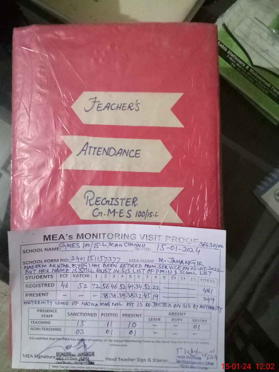 | EMIS Code: 36430100 | Name of School: GGES 100/15-L, MIAN CHANNU | |||