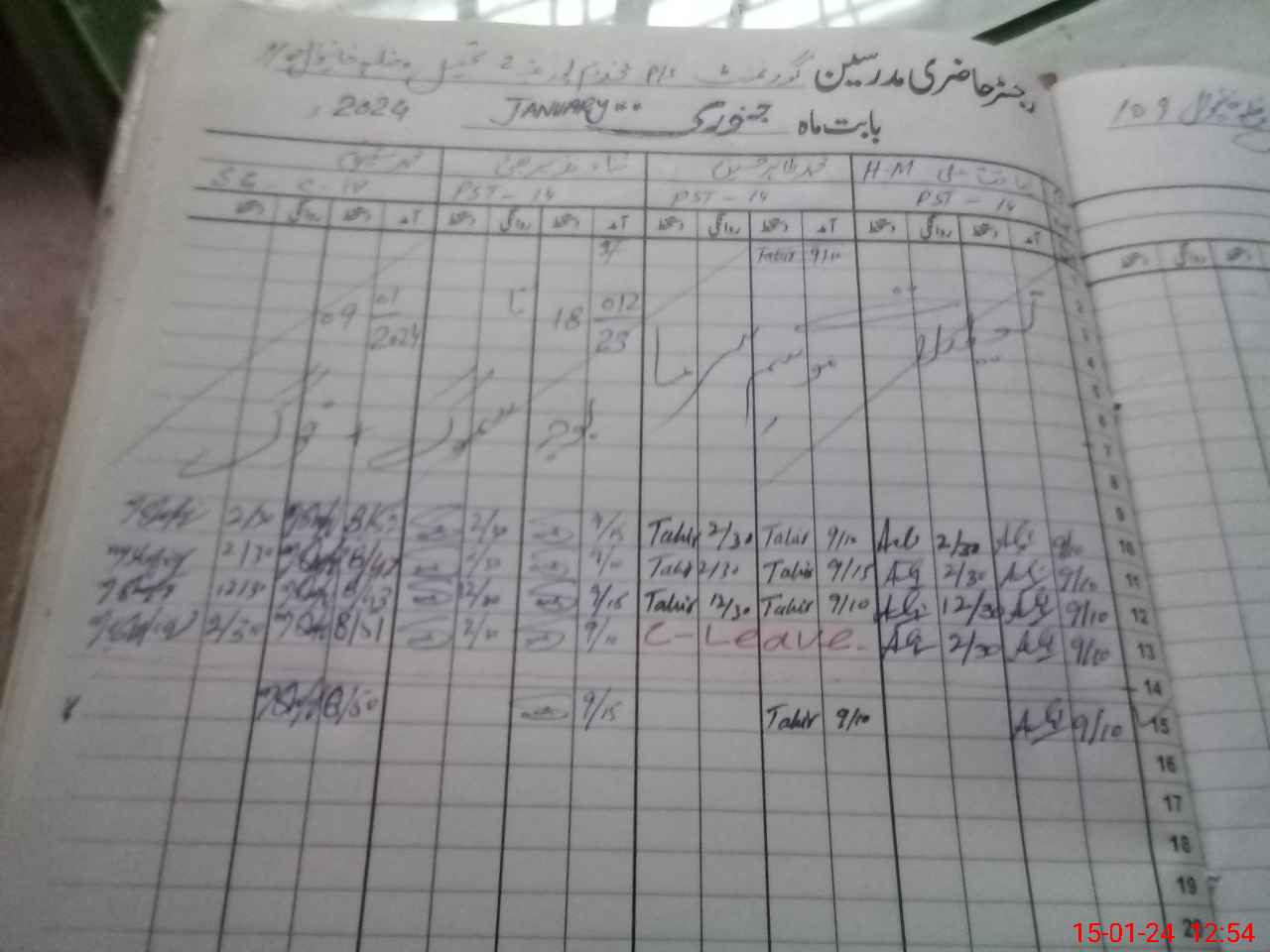 | CNIC | Full Name | Designation | R/C | Absence During Last Calender Month |