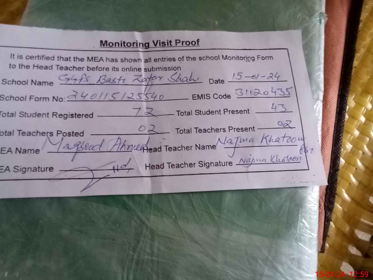| EMIS Code: 31120435 | Name of School: GGPS BASTI ZAFAR SHAH | |||