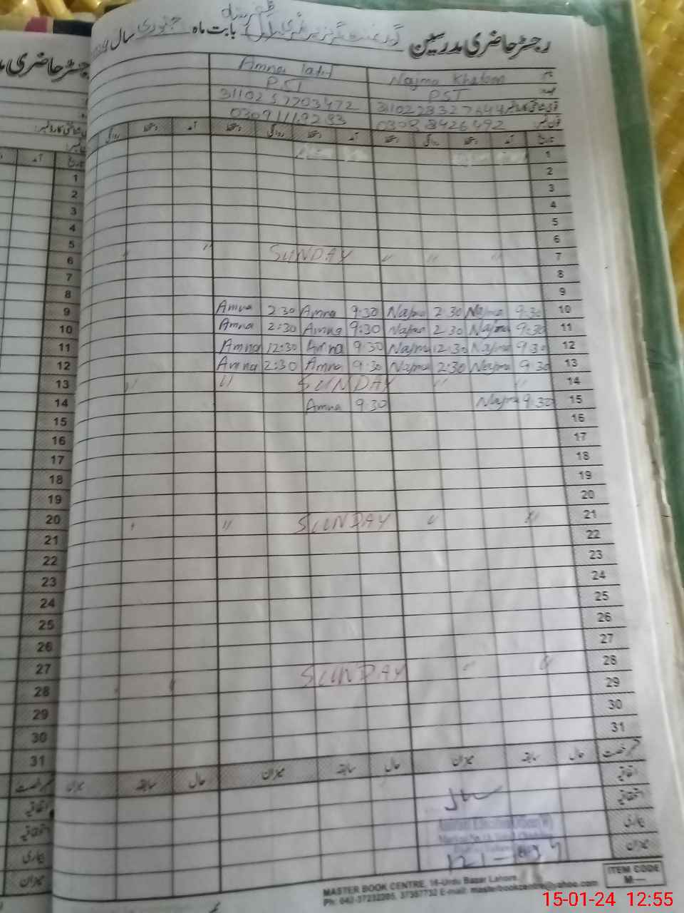 | Name: NA**** KH**** Designation: (School Headmaster's/Headmistress's) PST ARTS Phone/Cell Number: 03**** |