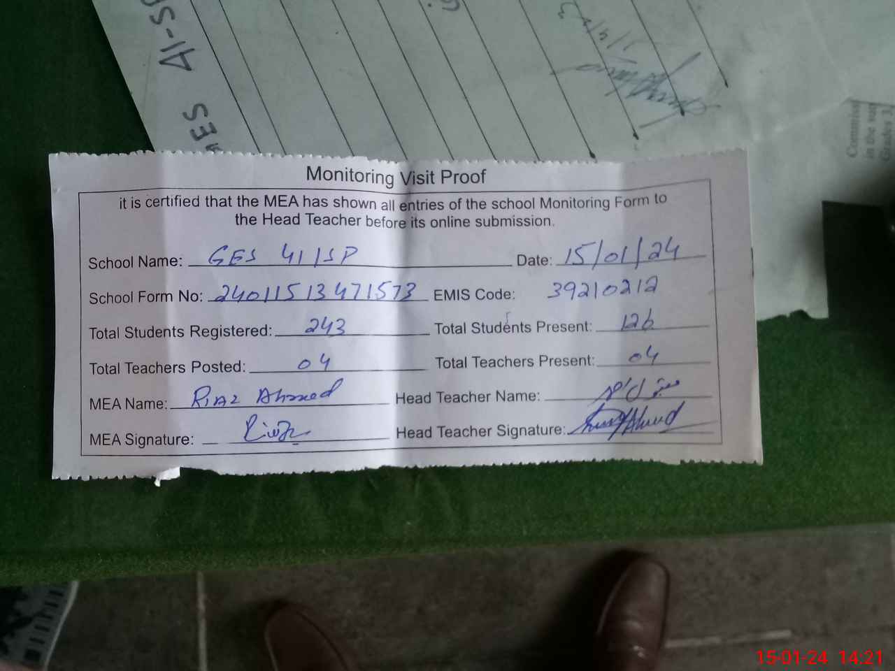 | EMIS Code: 39210212 | Name of School: GES 41 SP | |||