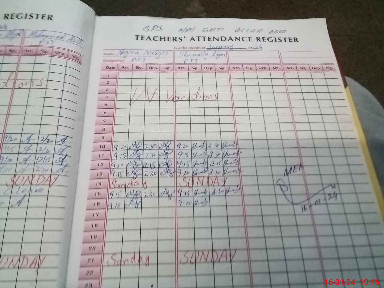 | Monitoring Date: 16-01-2024 | Start Time: 16-01-2024 09:52 AM | End Time: 16-01-2024 10:18 AM | Name of MEA: Sa**** Ah**** | |